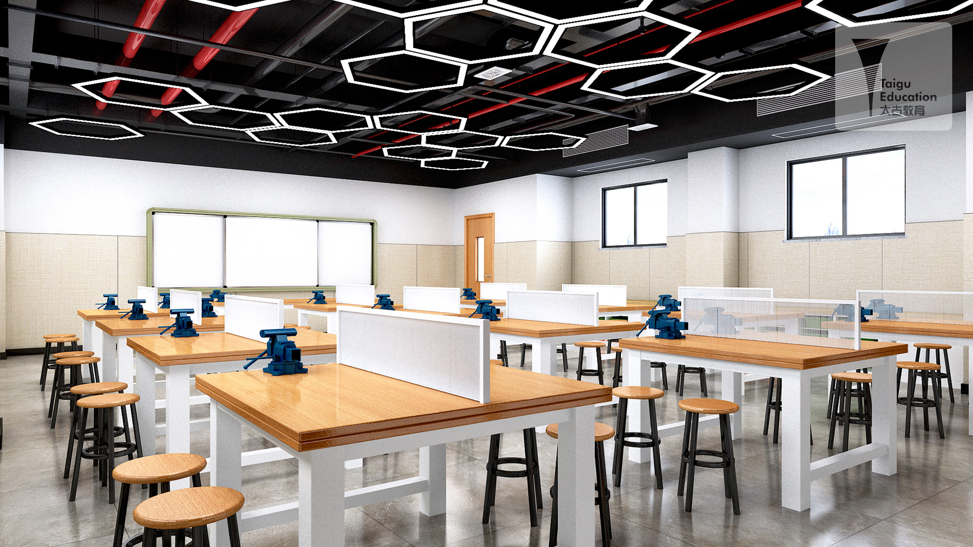 用(yòng)于教師(shī)進行(xíng)闆書(shū)、實驗、課件(jiàn)等進行(xíng)化(huà)學教學,為(wèi)學生(shēng)聽(tīng÷)課、分(fēn)組討(tǎo)論、分(fēn)組實驗提供場(chǎng)所,配備學生(shēng)$實驗台、實驗儀器(qì),供學生(shēng)自(zì)主探究實驗用(yòng)。利用(yòng)牆面,通(tōng)過圖文(w☆én)展示化(huà)學新發現(xiàn)和(hé)最新的(de)研究成果。